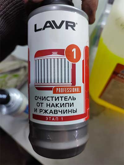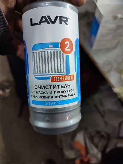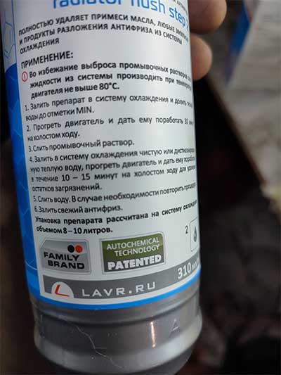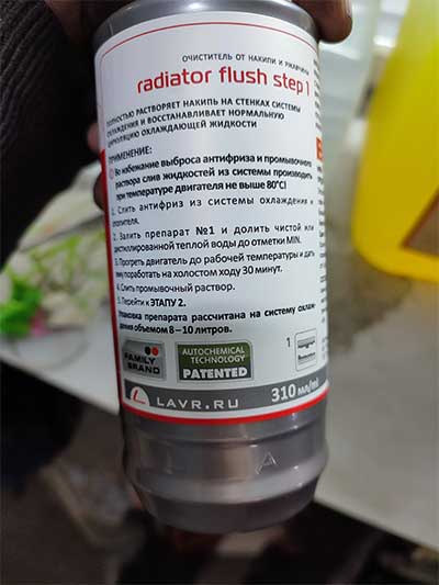 Заливается LAVR двухкомпонентный, для промывки системы охлаждения
